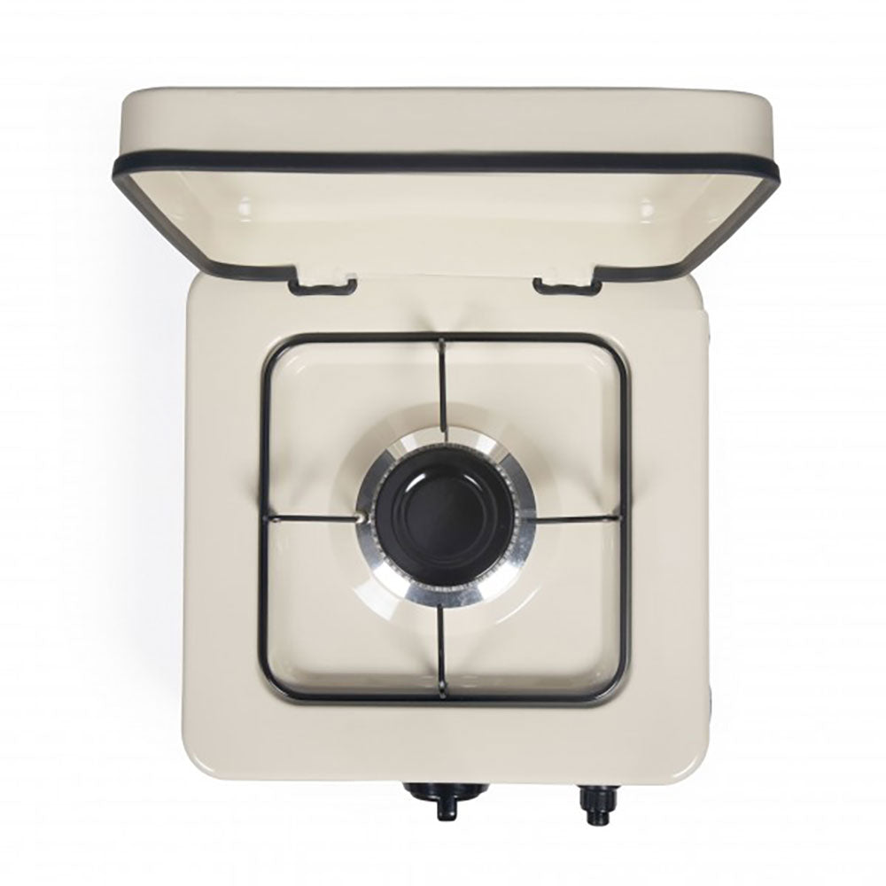 1 brenner 2,2 kW - Drives på gass - Piezo automatisk tenning - Avtakbart vindbeskyttelseslokk - Justerbar termostat